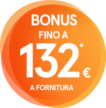 Dopo soli 6 mesi dall'attivazione riceverai un primo Bonus di 60€ una tantum a fornitura, che ti riconosciamo in bolletta senza aspettare di vedere i tuoi consumi nel tempo.